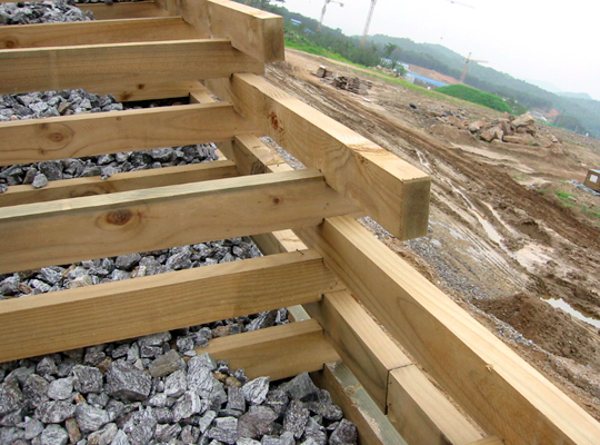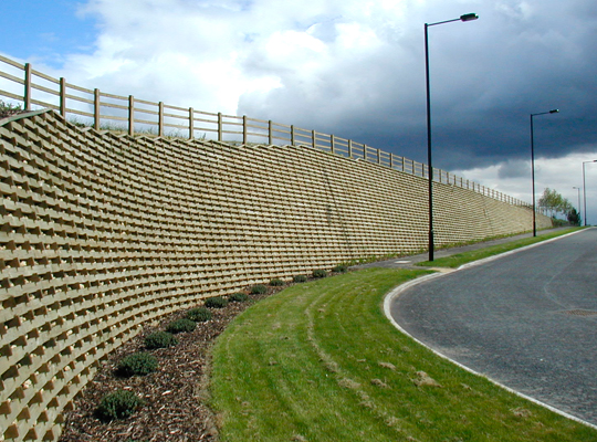 ลักษณะ : เป็นชิ้นไม้ธรรมชาติตัดเป็นส่วนๆ ได้แก่ Headers, Stretcher และ Pillow Blocks มาประกอบต่อกัน เป็นระบบ Interlock สามารถใช้เพื่องานตกแต่งภูมิทัศน์ และเป็นโครงสร้างกำแพงกันดินได้อย่างปลอดภัย